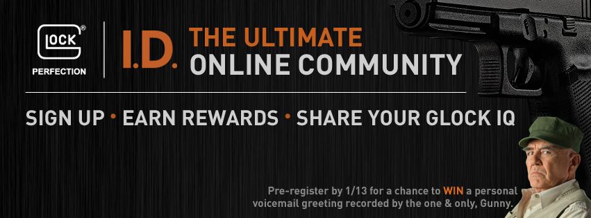 Announcement 1 of 3: Fan-Exclusive. GLOCK ID is now open for pre-registration. What is GLOCK ID? It’s not just “talk” it’s a tool you can use to improve your skills, track your progress and earn points which ultimately lead to some cool GLOCK rewards… if you are good enough. Pre-register and enter for a chance to win a voicemail greeting by Gunny himself.