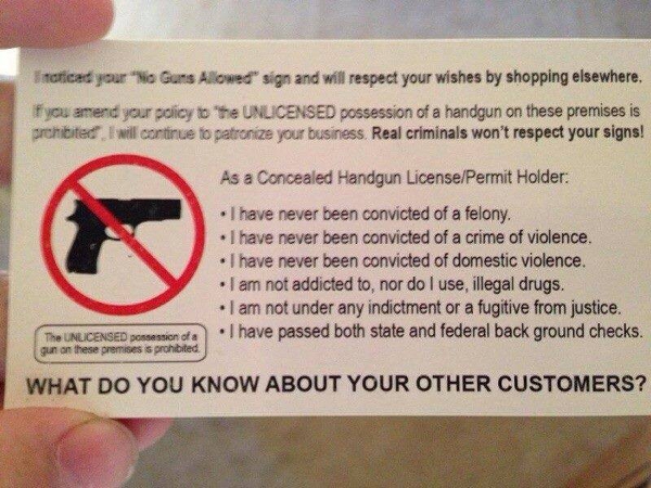 Having said that, I am leaning towards the argument that these cards may be effective for what they are designed to do and that is change a store owners mind about concealed carry on “their” property.